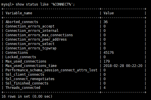 -> mysql> show status like '%CONNECT%';